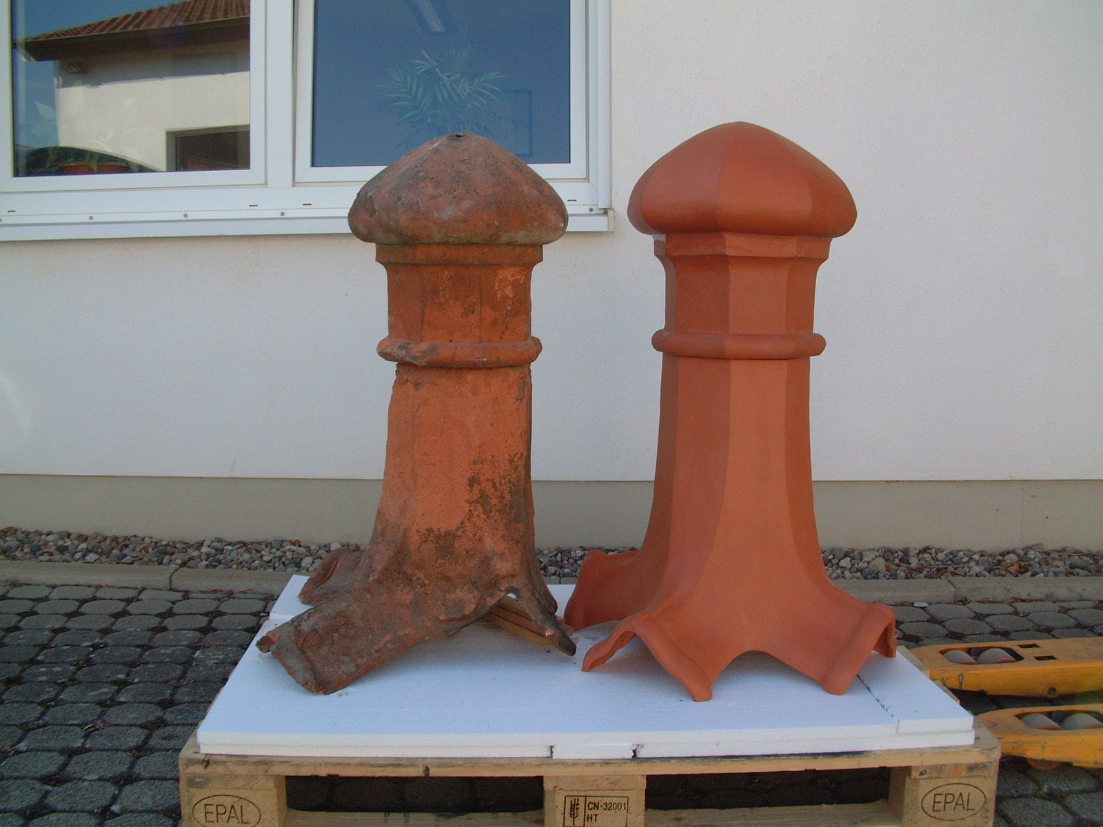 Keramische dakpironnen gemaakt van gebakken klei.
